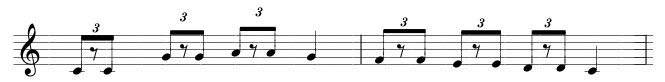 SWING FEEL Put identical pieces of music in front of a jazz player and a classical player and they will play the notes of the melody with different rhythms. The classical musician will play the rhythms as written, a precise division of the beat, while the Jazz player will alter the quarter and eighth notes in a triplet/rest fashion. This rhythmic alteration is what we call swing feel, also known as jazz eighths. See next example. Ex. 1.2 Twinkle Twinkle Little Star